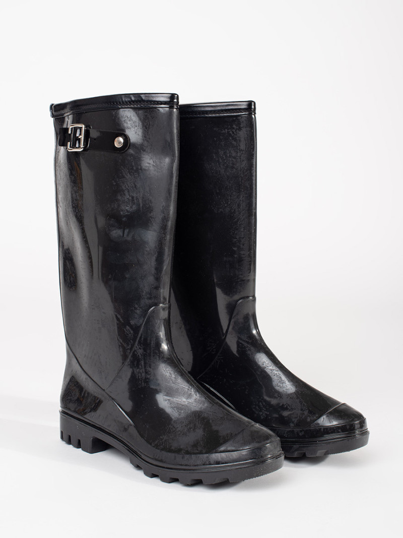 Jedinečné dámské gumáky černé na plochém podpatku